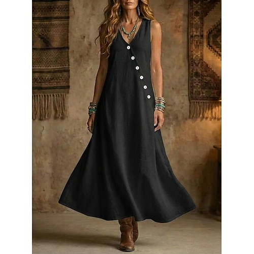 Per donna Abito maxi Vestito Casual Abito in cotone Vestito Canotta Elegante Moda Moderno All'aperto Vacanza Uscire Vestibilità comoda Semplice Senza Maniche Scollo a V Blu Nero Bianco Giallo Estate