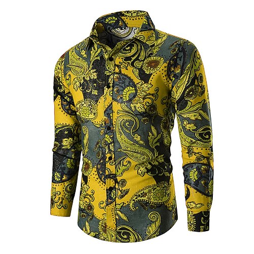 Per uomo Paisley Tribale Camicia Manica Lunga Vintage Moda Cool Streetwear Quotidiano Ferie Primavera Autunno Colletto Giallo Verde militare Rosso Verde