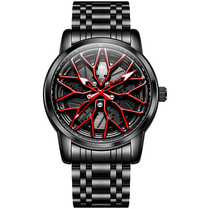 The New Olevs Men'S Business Watch With Luminous Skeletonized Rotating Wheel Hub Caliper Quartz Watch Is A Fashionable Casual And Waterproof Men'S Sports Wristwatch