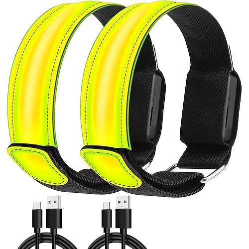Confezione da 2 braccialetti luminosi a LED ricaricabili, braccialetti da corsa a LED, braccialetti di sicurezza a LED lampeggianti regolabili, braccialetti luminosi regolabili per abbigliamento da