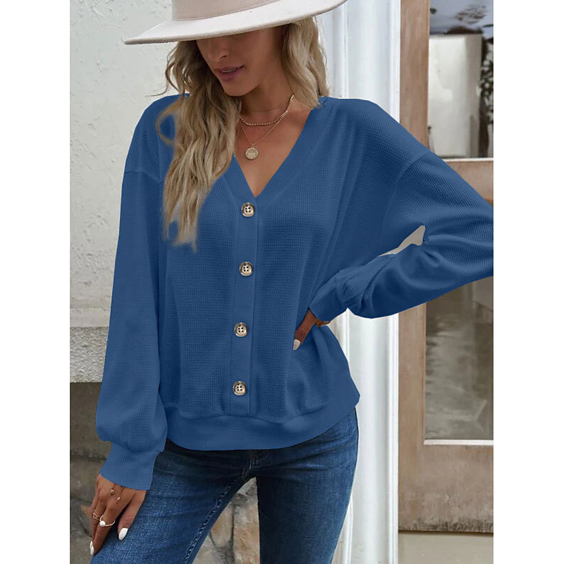 Women's Blouse Solid Color Stylish Casual Long Sleeve V Neck Regular Tops Daily Buttons Black White Blue Green Khaki Spring Fall