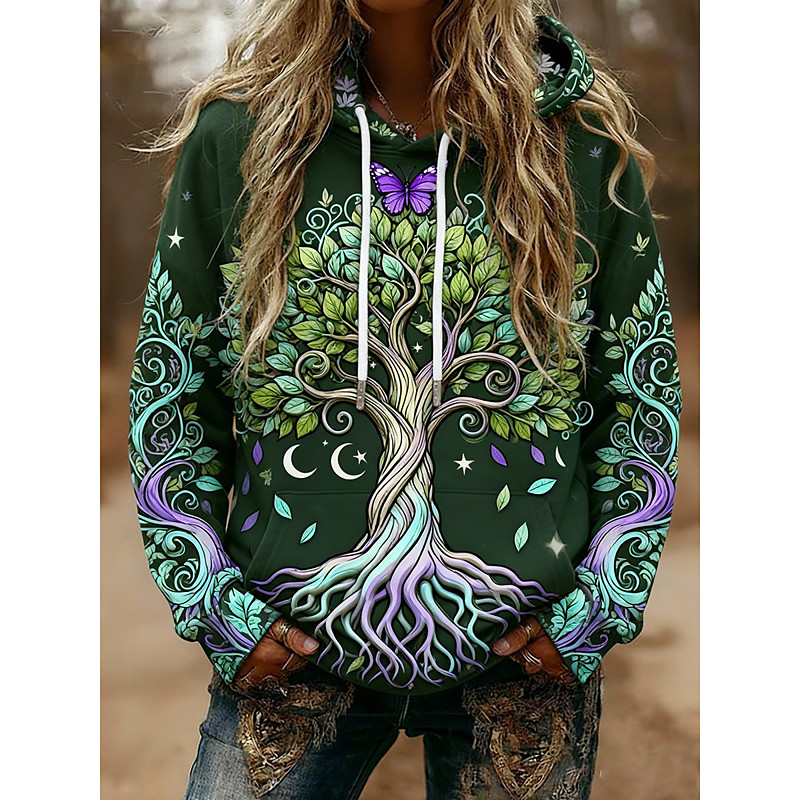Women's Pullover Hoodies Graphic Vintage Western Casual Long Sleeve Hooded Regular Tops Dailywear Casual Drawstring Pocket Print Green Spring Fall