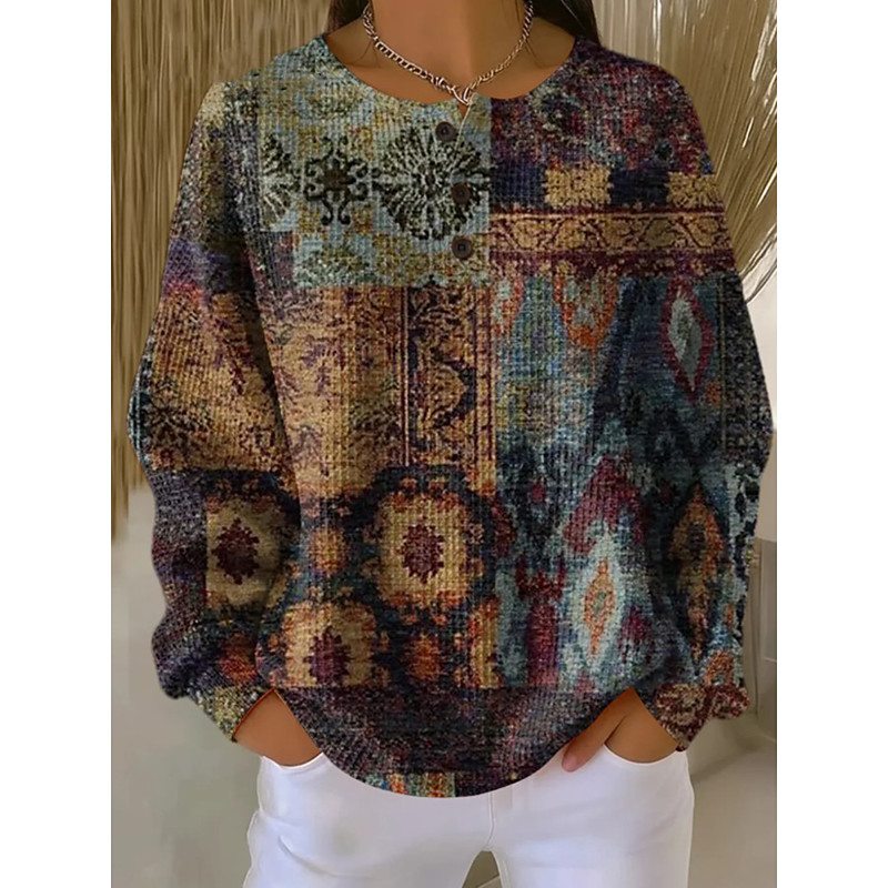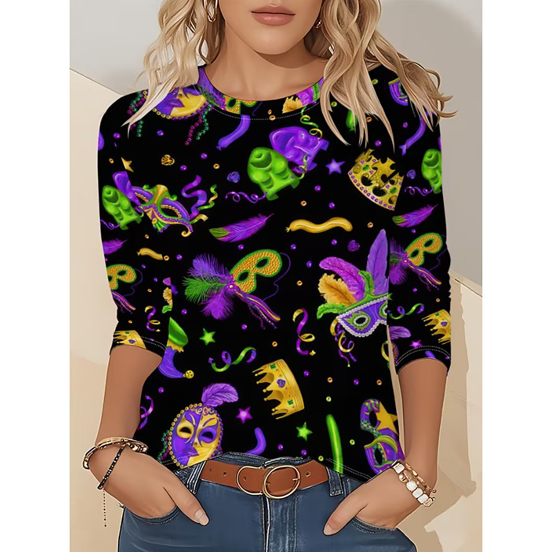 Carnival Women's T Shirt Graphic Geometric Vintage Stylish Modern Long Sleeve Crew Neck Regular Tops Daily Weekend Print Purple Summer Spring