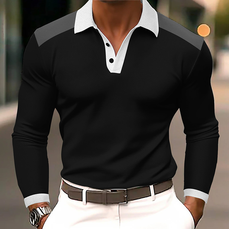 Men's Color Block Polo Long Sleeve Polo Shirts Lapel Casual Outdoor Athleisure Daily Wear Buttons Spring Fall Blue Black Navy Blue