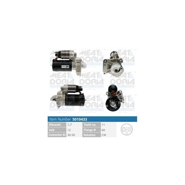 Käynnistin 12V Meat & doria 5010433 - bmw 1 [f20, f21], 3 [f30, f80], 3 touring [f31] - OE 12417631025, 12417631054, 12417638192