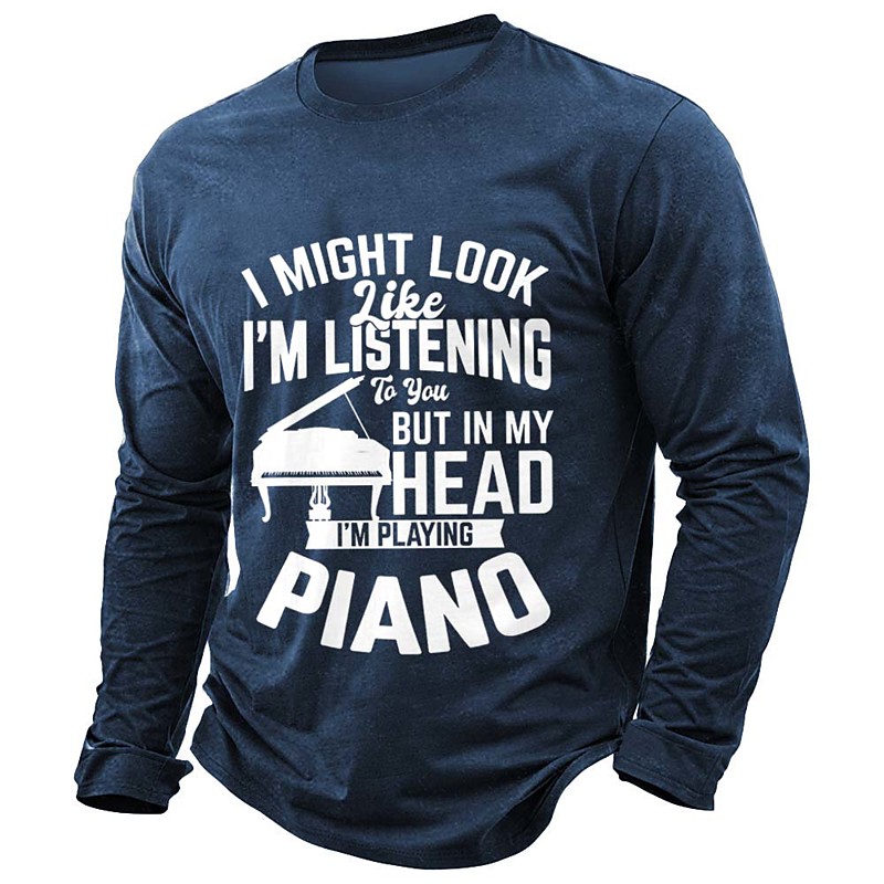 I Might Look Like I Am Listening To You But In My Head I Am Playing Piano Funny Piano Player Long Sleeve Shirt For Men Musician Graphic Tee Olive Green Music Lover Top Clothing Apparel S M L XL XXL XX