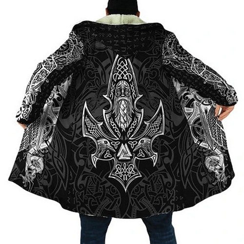 Herren Wikinger Wintermantel Fleecejacke Mantel Thermowarm Bequem Lässig Alltagskleidung Reißverschluss Tasche 3D-Druck Herbst Winter Mit Kapuze Langarm Schwarz 1 Schwarz Schwarz 2