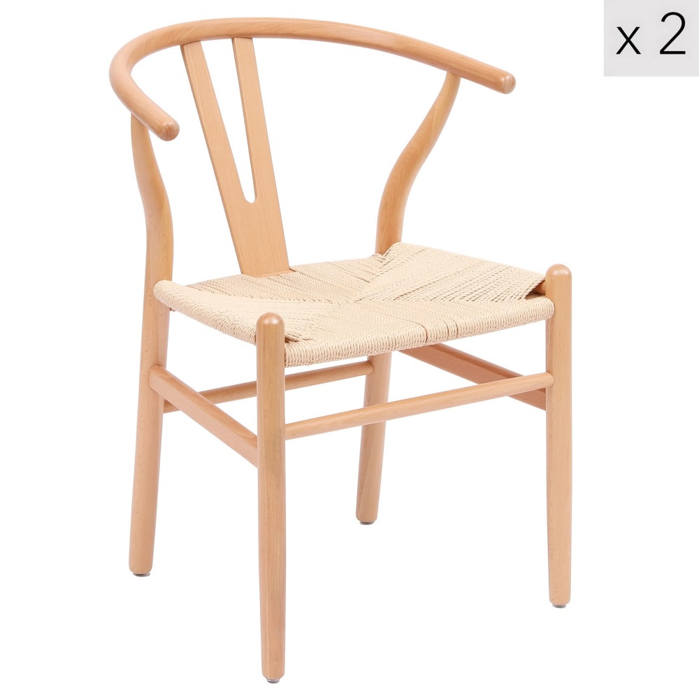 Set 2 sedie in legno e corda