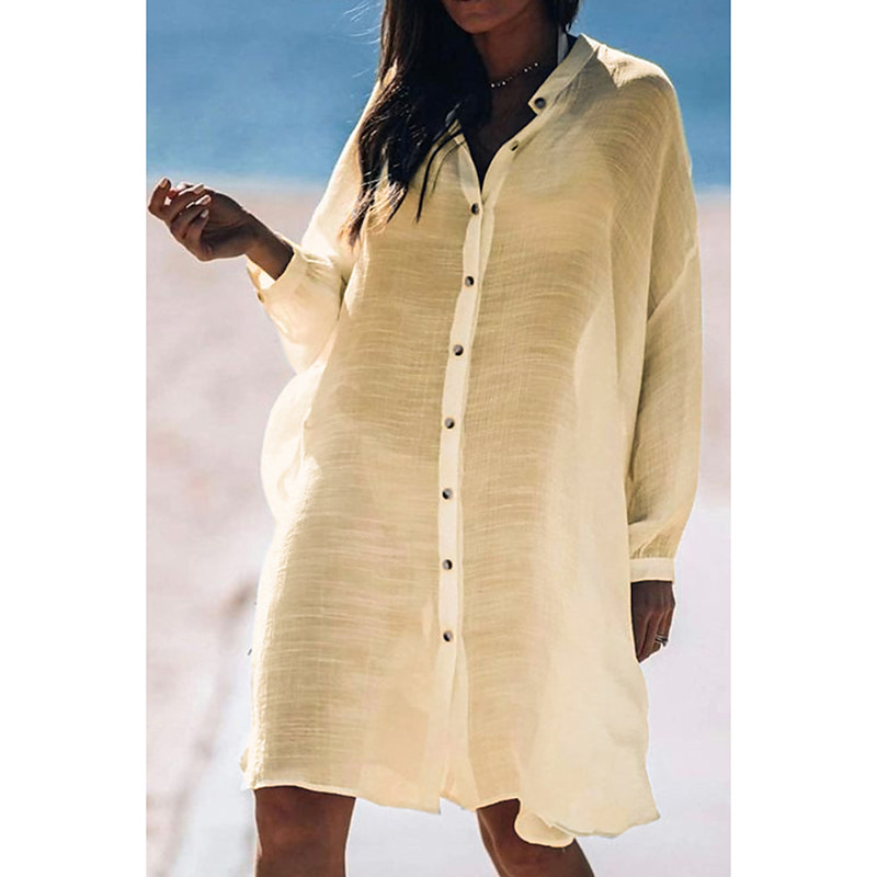 Women's Shirt Cotton Blend Button Up Blouse Plain Modern Casual Long Sleeve Shirt Collar Long Tops Daily Holiday Going out Buttons White Yellow Pink Light Blue Summer