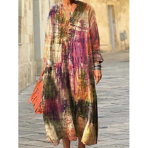 Per donna Abito Midi Vestito Estivo Abito a trapezio Vacanza Casual Boho Uscire Spiaggia Vestibilità comoda Grafico Geometrico Astratto Manica Lunga Scollo a V Rosso Blu Viola Verde Primavera Autunno