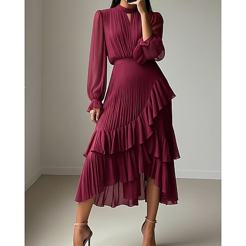 Per donna Abito Midi Vestito Casual Vestito a ruota Elegante Moda Quotidiano All'aperto Weekend Vestibilità regolare Grafico Manica Lunga Girocollo Viola chiaro Viola Fucsia Verde Primavera Autunno