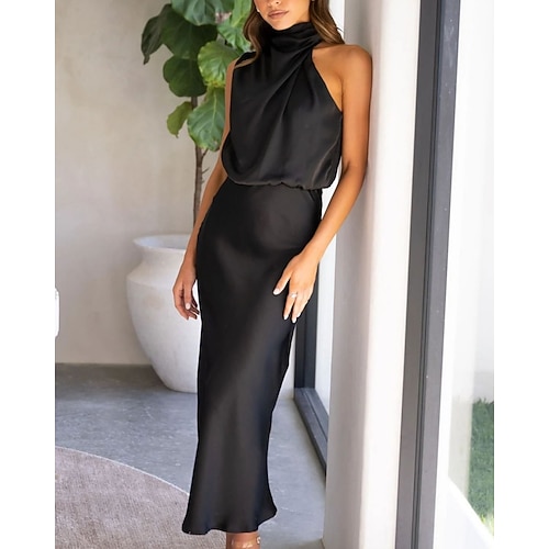 vestito sexy da donna per San Valentino, vestito da festa, prendisole, mini abito nero bianco verde militare senza maniche, colore puro, senza schienale, estate, primavera, scollo all'americana,