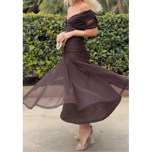 Per donna Abito Midi Tubino Vacanza Compleanno Spiaggia Feste Uscire Vestibilità regolare Tinta unica Manica Corta Scollo a V Marrone scuro Verde scuro blu navy Rosso Estate Primavera