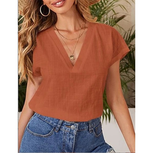 Per donna Maglietta Semplice Moda Elegante Classico Manica Corta Scollo a V Top Regolari Quotidiano Weekend Blu Nero Bianco Giallo Rosa Estate Primavera