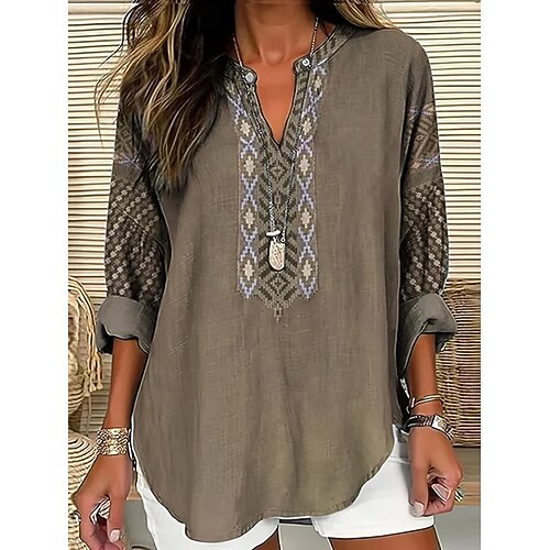 Per donna Blusa Semplice Elegante Casual Manica Lunga Scollo a V Top Regolari Uscire Nero Bianco Rosso Cachi Primavera Autunno Inverno