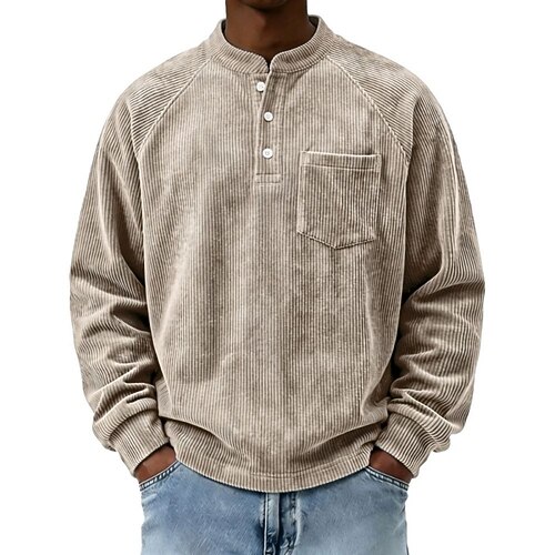 Per uomo Maglietta Camicia di Velluto a Coste Maglia Henley Manica Lunga Henley Primavera Autunno Tinta unica Vintage Streetwear Elegante Tasca Manica corta Quotidiano All'aperto Vacanza Nero Blu