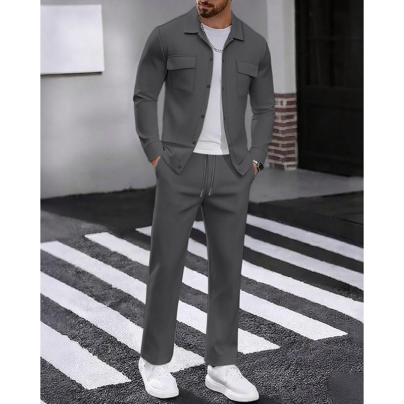 Men's Lightweight Jacket Corduroy Jacket Casual Jacket Set Vacation Daily Breathable Pocket 2 Piece Spring Fall Plain Fashion Classic Lapel Regular Black White Navy Blue Khaki Army Green Jacket