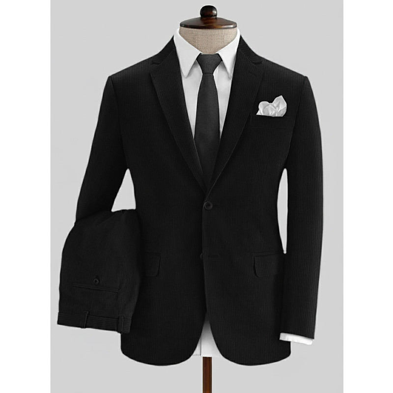 Men's Wedding Business Party Suits Notch Lapel Black Casual Formal Solid Colored Tailored Fit 2 Piece Single Breasted Two-buttons