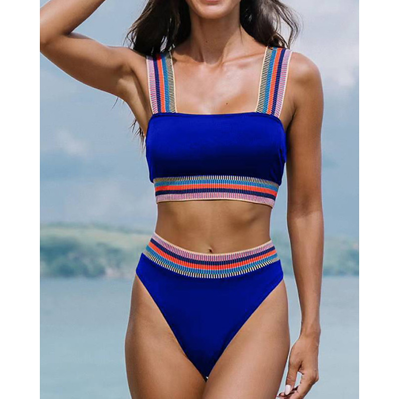 Women's Bikini 2 Piece Swimsuit Colorblock Cheeky Vacation Stylish Graphic Striped V Neck Sleeveless Bathing Suits