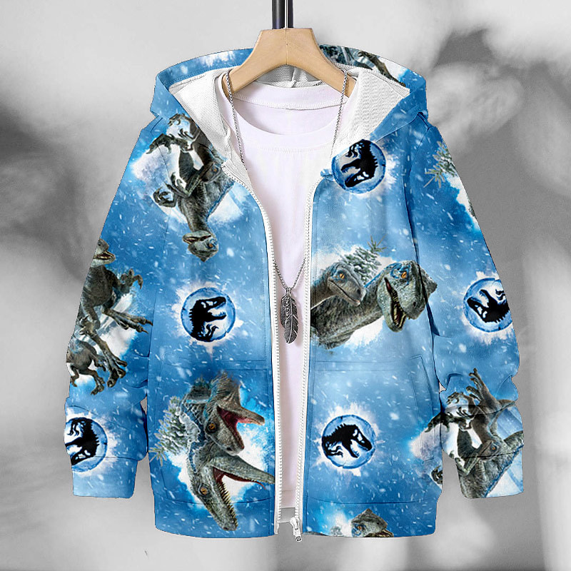 Boys 3D Dinosaur Hoodie Coat Outerwear Long Sleeve 3D Print Fall Winter Fashion Streetwear Cool Polyester Kids 3-12 Years Outdoor Casual Daily Regular Fit