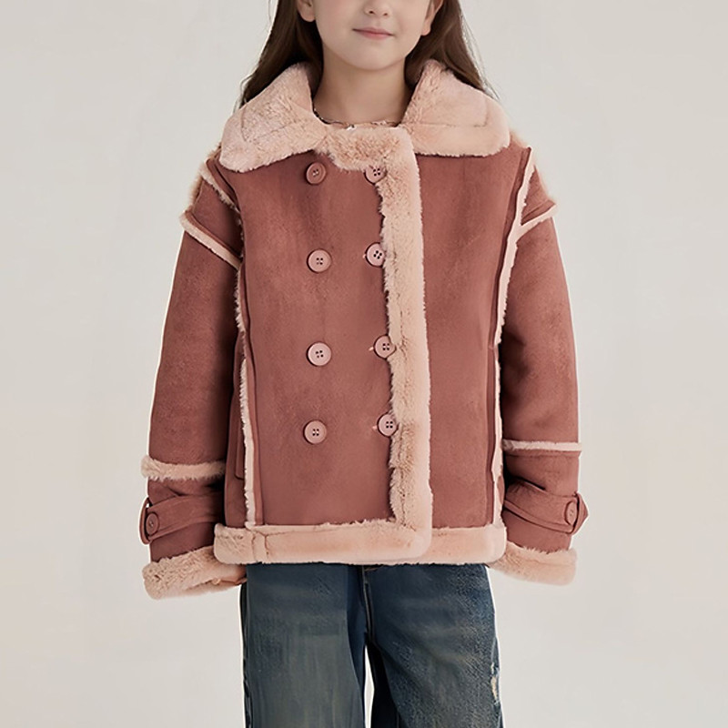 Kids Girls' Faux Suede Jacket Fleece Jacket Jacket Solid Color Fashion Buttons Keep Warm Windproof Outdoor Coat Outerwear 4-12 Years Fall Brown