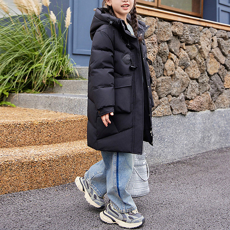 Kids Girls' Down Jacket Puffer Jacket Solid Color Sports Pocket Keep Warm Windproof Outdoor Coat Outerwear 4-12 Years Winter Black White Light Green