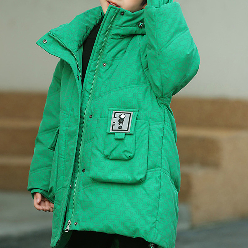 Kids Unisex Down Jacket Outdoor Jacket Puffer Jacket Outerwear Color Block Long Sleeve Keep Warm Windproof Coat Outdoor Daily Basic Black Green Gray Fall Winter 4 years