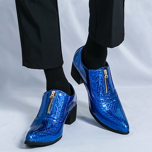 scarpe da uomo in vernice blu con stampa coccodrillo e cerniera - calzature di lusso per abiti da sera e riunioni di lusso
