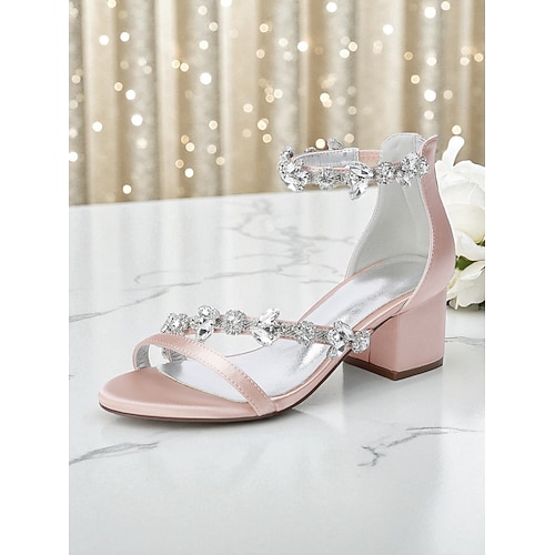 sandali da donna con tacco a blocco in raso blu e cinturini floreali in strass - eleganti scarpe da sera, da festa e da cocktail