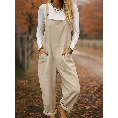 Salopette da donna in 100% cotone, leggera, tinta unita, senza maniche, dritta, scollo quadrato con tasca, per le vacanze, per tutti i giorni, vestibilità ampia, verde militare, rosso e blu, estiva