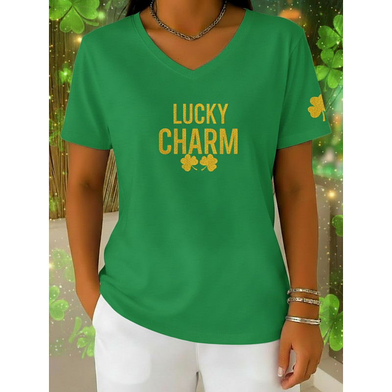 St. Patrick's Day Women's T Shirt Tee Top Shamrock Stylish Classic Casual Short Sleeve V Neck Regular Tops Daily Weekend Vacation Wear Print White Green Summer Spring