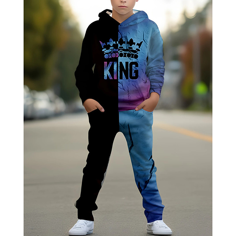 Boys' 3D Graphic Hoodie Sweatpants Set Sports Suit Tracksuits Long Sleeve Spring Fall Daily Basic Casual Kids 4-12 Years Hooded Outdoor Vacation Sports Tailored Fit