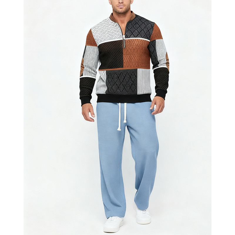 Men's Sweatshirt Tracksuit Outfit Set Stand Collar Outdoor Daily Sports Drawstring Pocket Half Zip Color Block Black White Sky Blue Activewear Fashion Streetwear Spring