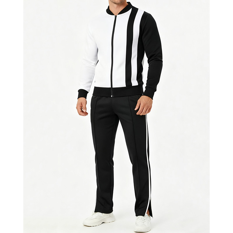 Men's Sweatshirt Tracksuit Outfit Set Stand Collar Outdoor Daily Sports Drawstring Zip Up Pocket Color Block Black White Navy Blue Activewear Fashion Streetwear Spring