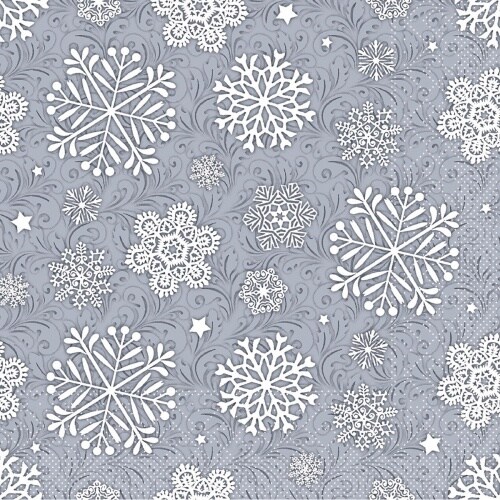 Mank Serviette Tissue Steven in Silbergrau, 33 x 33 cm, 100 Stück - Weihnachten Schneekristalle
