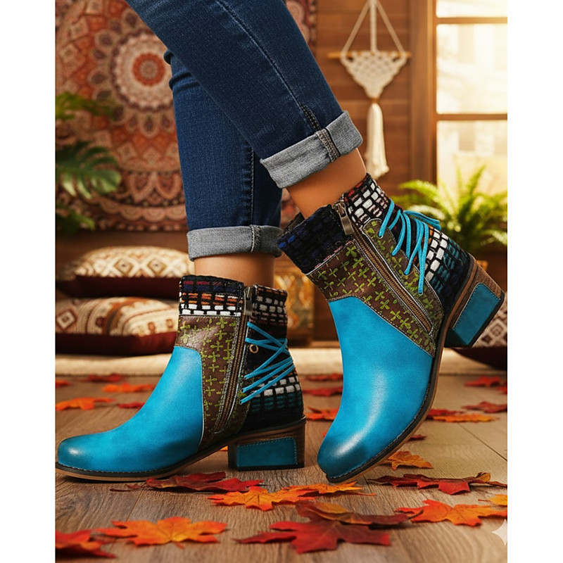 Women's Bohemian Green Ankle Boots - Handmade with Ethnic Patterns, Perfect for Festival Daily Wear
