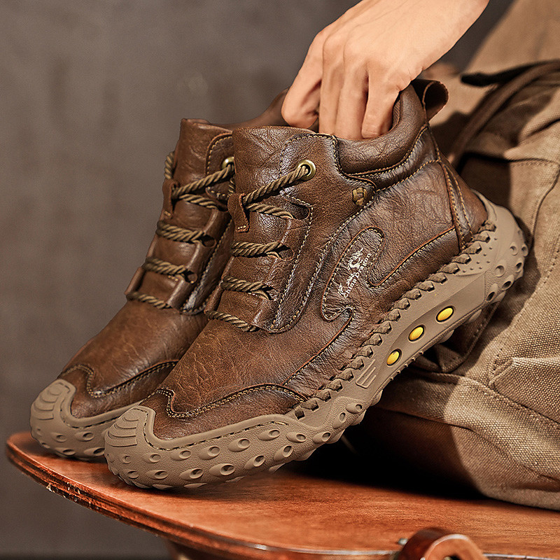 Men's White Handmade Hiking Boots – Durable and Comfortable Faux Leather Design, Perfect for Outdoor Adventures and Everyday Wear