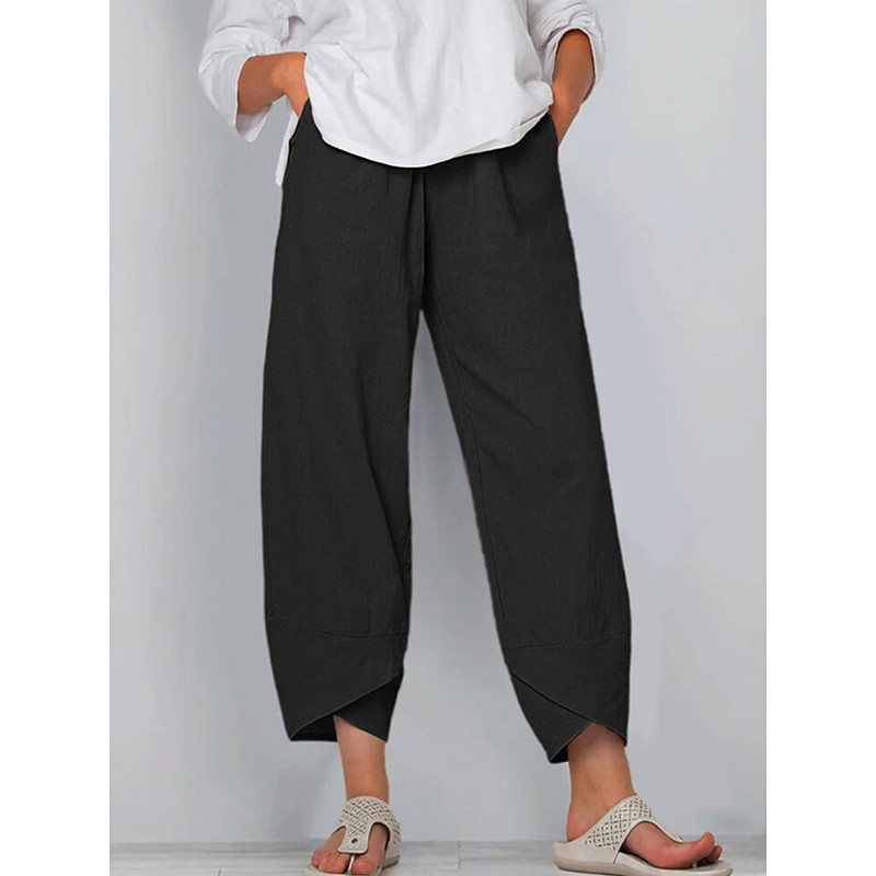 Per donna Taglia EU / US Misto cotone Pantaloni Larghi Vacanza Casual Quotidiano Lunghezza al ginocchio Naturale Semplice Tinta unita Coulisse Tasca Baggy Confortevole Inelastico Casuale