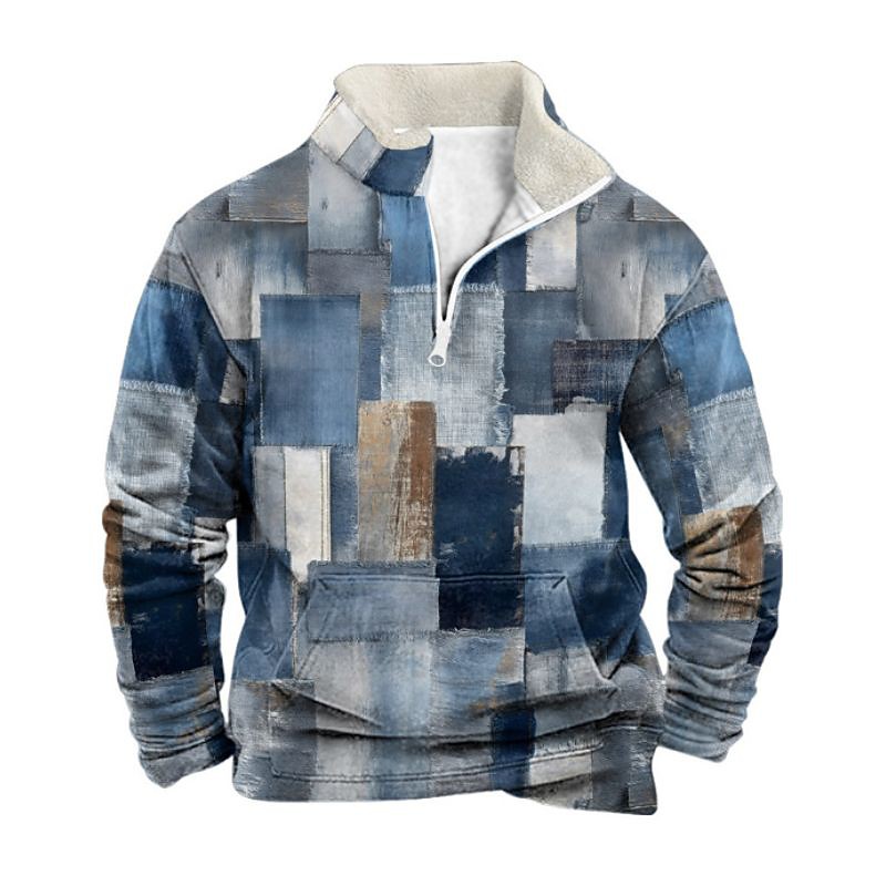 Men's Color Block Printing Quarter Zip Sweatshirt Holiday Sweatshirt Sweatshirts Long Sleeve Sweatshirt Half Zip Vintage Retro Print Holiday Going out Festival Print Fall Winter