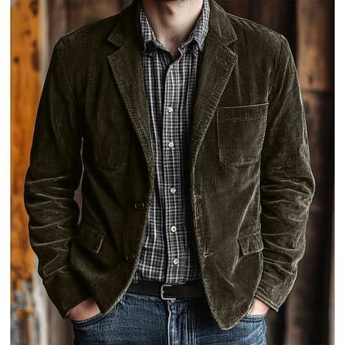 Per uomo Giacca in Velluto a Coste Colletto ad incastro Moda Casual Tinta unita Blazer Nero Marrone Verde militare Vestibilità su misura Monopetto Due Bottoni