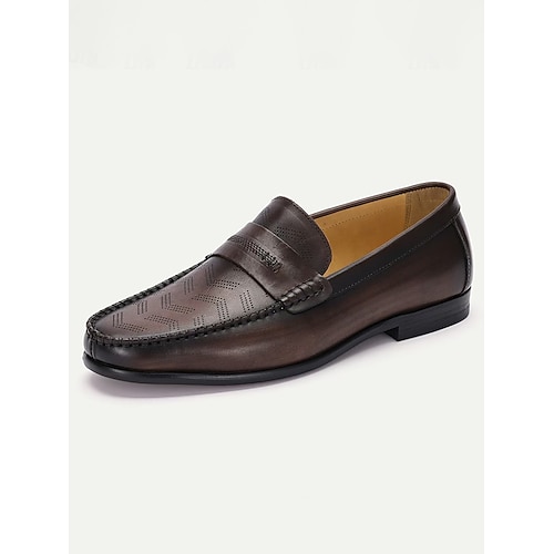mocassini casual da uomo in pelle marrone, finitura liscia con vestibilità comoda, stile elegante e formale per matrimoni, funzioni religiose e riunioni formali
