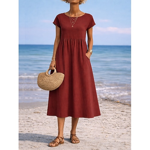 Per donna Abito maxi Finto cotone e lino Abito a Tubino Vestito Casual Essenziale Moderno Quotidiano Weekend Vestibilità comoda Semplice Mezza Manica Scollo a V Blu marino Arancione Verde Kaki Estate