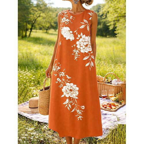Per donna Abito Midi Abito a Tubino Vestito Estivo Abito a trapezio Vacanza Casual Boho Spiaggia Feste Vestibilità comoda Floreale Grafico Senza Maniche Girocollo Blu Rosa Arancione Verde Estate