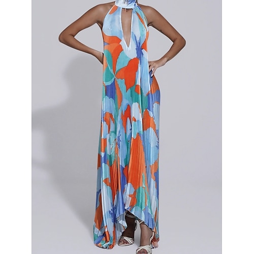 Per donna Abito maxi Vestito a ruota Abito Floreale Abito con Collo Allacciato Elegante Moda Moderno All'aperto Vacanza Feste Vestibilità comoda Floreale Senza Maniche All'americana Arancione Marrone