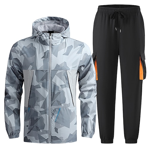 Per uomo Tuta da 2 pezzi Felpa con cappuccio Lounge Set di tute da ginnastica Con zip Stampato Completo Abbigliamento Primavera Nero Blu Palestra Allenamento Corsa Vita Alta Protezione Solare Leggero