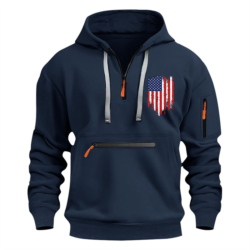 Men's Hoodie Pullover Quarter Zip Hoodie Blue Black Wine Navy Blue Camel Hooded American US Flag Pocket Print Daily Sports Outdoor Holiday Streetwear Sportswear Casual Fall Winter Clothing Apparel