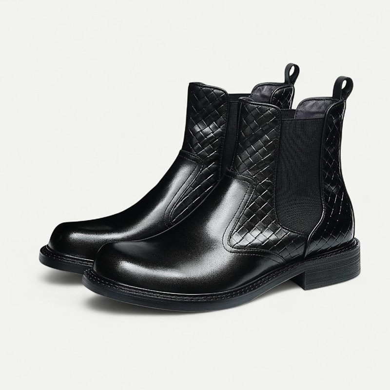Men's Brown Woven Chelsea Boots Classic Slip-On Ankle Boots with Elastic Side Panel for Office, Parties and Smart Casual Outfits