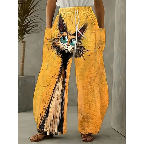 Per donna Gamba larga Chinos Pantaloni Vacanza Moda Casual Lunghezza intera Vita AltaPantsHalloween Gatto Tasca Fascia Elastica Stampa Comodo Morbido Confortevole Elasticizzato All'aperto Streetwear