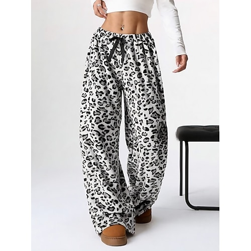 Per donna Gamba larga Chinos Vacanza Moda Streetwear Lunghezza intera Vita Alta Cuore Leopardo Fascia Elastica Stampa Comodo Morbido Confortevole Elasticizzato All'aperto Streetwear Nero Bianco Rosso