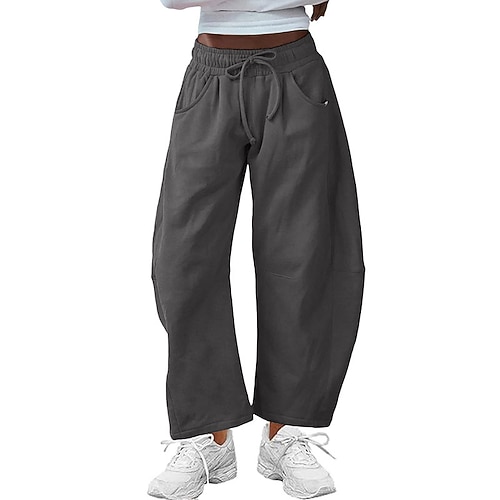 Per donna Attivo Culotte Gamba Larga Chinos Streetwear Casual Lunghezza intera Vita media Semplice Elastico in vita Confortevole Elasticizzato All'aperto Vacanza Athleisure Grigio scuro Nero Vino
